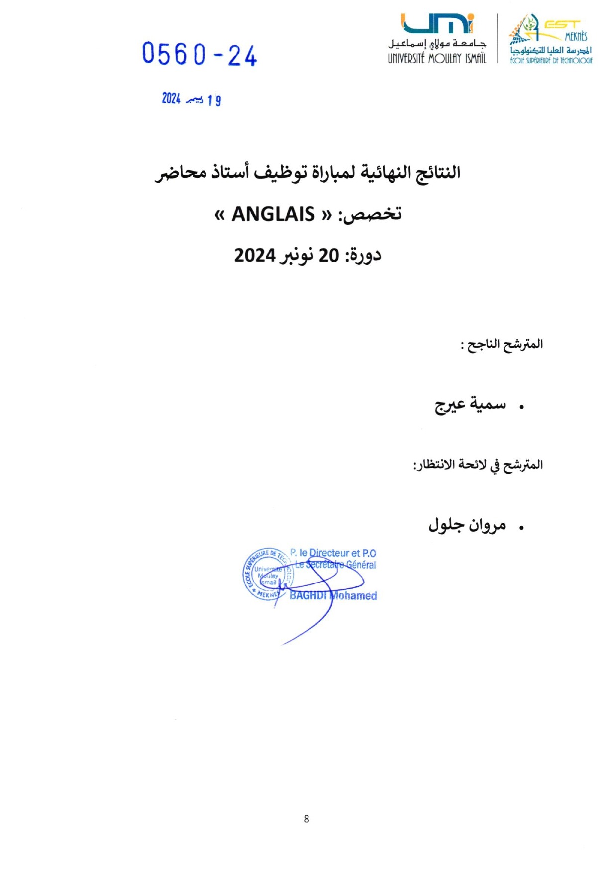Résultat final du concours de recrutement d’un PA/A( maître de conférence) en Biophysique Vous devriez également aimer 1er colloque international de psychologie à Meknès CIPCV’2224 janvier 2022 Cérémonie de clôture de l’année universitaire 2017-201823 juillet 2018 Bourses d’études en Indonésie12 janvier 2018